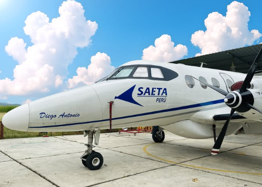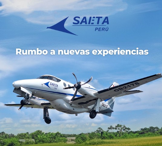 SAETA PERÚ, inició sus operaciones en diciembre del año 2000, en la ciudad de Yurimaguas, con una aeronave Piper Seneca II, al poco tiempo se adquirieron 4 aeronaves más del tipo Cessna 172, 206, 210, para incursionar en las diferentes rutas de las regiones de Loreto, San Martín y Ucayali. La idea inicial del dueño y Fundador Daniel Escalante Gómez siempre fue conectar los diferentes pueblos de la Amazonía Peruana. Por el año 2014 se da inicio a la era Turbo hélice, con la incorporación a la flota de dos aeronaves muy versátiles con una autonomía superior capaz de volar por todo el país Piper 42 Cheyenne III (OB1630) (OB 1714). En el año 2015 se apertura la ruta Tarapoto – Pucallpa, y el 2016 inician los vuelos subvencionados a distintas rutas de la Amazonía Peruana. A partir del año 2017 entramos en la categoría Commuter con la adquisición de aeronaves de mayor tamaño y mayor capacidad; los famosos JETSTREAM3200(OB2152) (0B2169) (OB2178) (OB2201) (OB2222) aeronaves con mayor performance con una capacidad para 19 pasajeros. Ya para el 2021 se incorpora el Cessna 208 B Grand Caravan (OB2228)